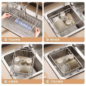 メーカーはステンレス製のシンク排水バスケット、シンク排水ボウルラック、伸縮式キッチン収納ラック、食器、ボウルを供給しています。