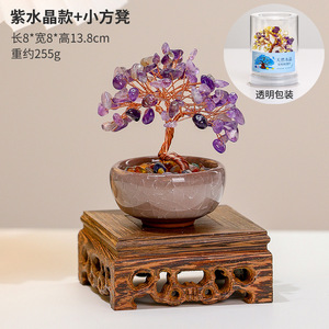 天然黄水晶発財樹客間玄関テレビ盤事務室デスクトップ招財樹置物幸運発財樹