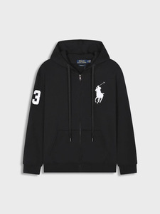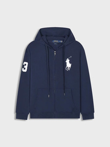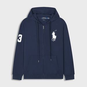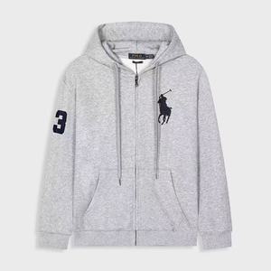 春秋は絨毯の項の男性の刺繍の大きい馬をつかんで帽子のカーディガンの服をつないでゆったりしている大きいサイズの紳士服のPoloコートを刺繍します。