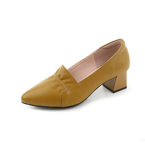 ポインテッドトゥ本革浅口ソフトレザーミッドヒール快適な女性の靴 2025 新作春夏牛革厚いヒールプロの小さな革靴
