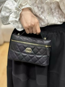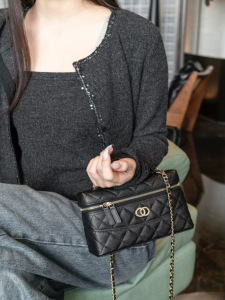 小香風25c春夏新作手提げ化粧箱包み牛革菱格チェーンLP形手持ち斜めがけバッグ
