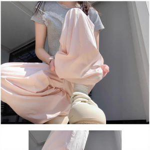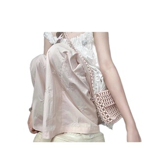 ピンク刺繍リボンアイスシルク山本パンツ女性の夏の 2025 新しいカジュアル怠惰なウォーキングドレープワイドレッグパンツ