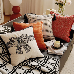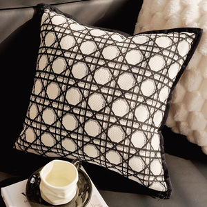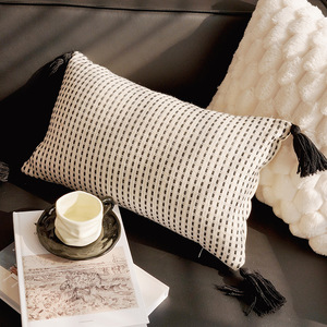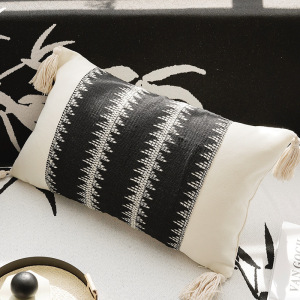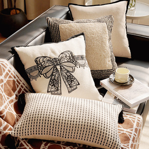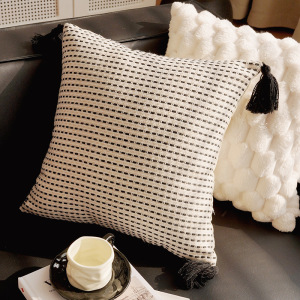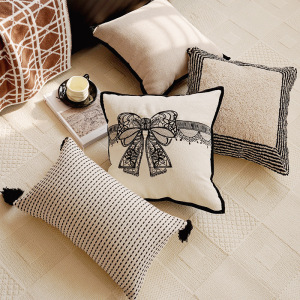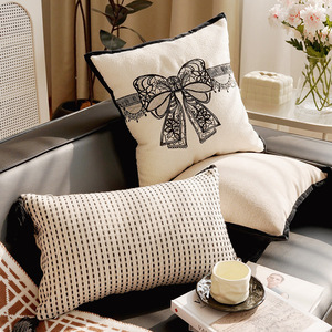 フレンチレトロなリビングルームのソファ枕クリームスタイルの出窓クッションベッドサイドクッション黒と白のストライプの枕カバー芯付き