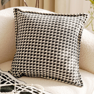 黒エッジビルディングブロックチェス凹凸パターン正方形45x45cm個別枕カバー