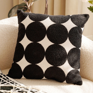 ハーフベルベットブラックラージドットスクエア45x45cm個別枕カバー