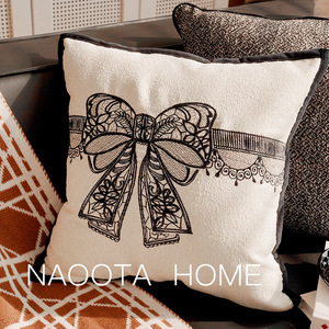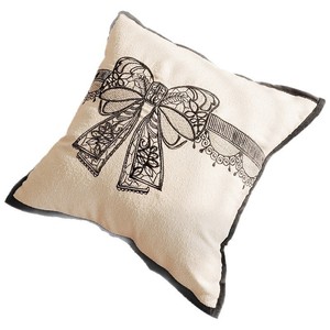 ブラックエッジ刺繍ブラックリボンスクエア45x45cm個別枕カバー