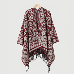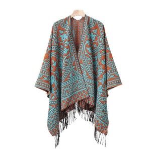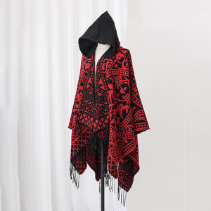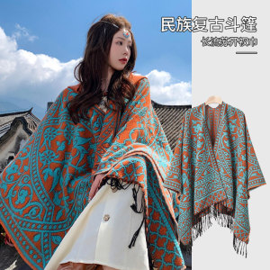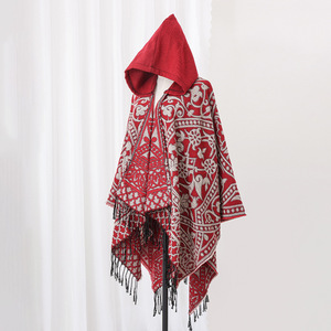 エスニックスタイルの旅行服、写真撮影用ショール、模造カシミアスカーフ、秋冬の厚く暖かいスリットスカーフ、フード付きマント