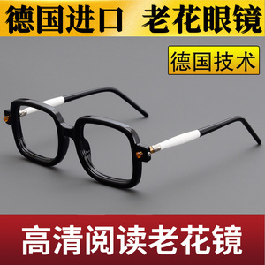 中高年向けのスクエアフレーム男性用老眼鏡、女性向けの手作りの太いフレームの高精細抗青色光読書疲労メガネ、ハイエンドスペシャル