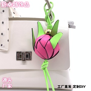 クリエイティブな手織り本革ドラゴンフルーツペンダントバッグペンダント模擬フルーツバッグペンダント第一層牛革装飾