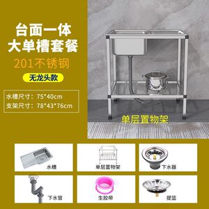 台所のステンレス水槽のスタンド家庭用シングルタンクの食器洗浄池の野菜を洗う池の一体の洗面器のテーブル