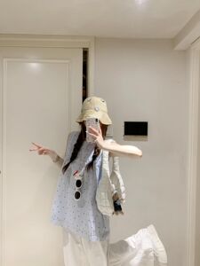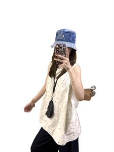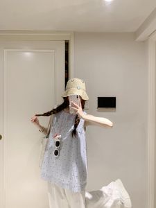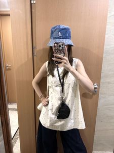 ガーリーブルー水玉ノースリーブ Tシャツ女性のための 2025 新しいベビードールシャツトップ夏アウタールーズチョッキベスト