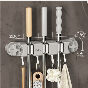 モップ壁掛けクリップ浴室フックパンチフリー吸盤モップクリップ多機能モップホルダー家庭用強力ホルダー