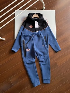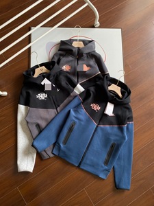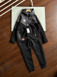春秋海外人気NK共同ブランドメンズスーツフックプリントレタースポーツスプライシングフード付きトップスとパンツ