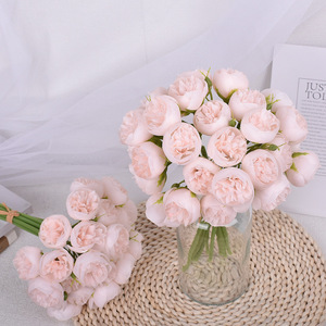シミュレーション27頭の茶薔薇の花束牡丹の花は、偽の花の結婚式場の手を花の束の家の装飾の撮影道具をすくった