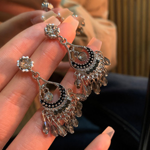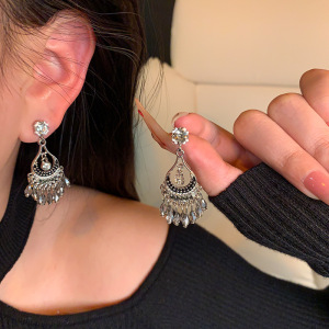 エスニック扇形タッセルイヤリング、レトロな気質、ハイエンドのボヘミアンイヤリング、軽い高級ニッチデザインイヤリング
