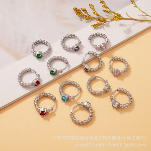 女性用のパーソナライズされたカラフルなジルコニウムイヤリング、幾何学的で絶妙なヨーロッパとアメリカのイヤリング、ニッチなデザイン、ハイエンドのイヤリング、ニッチなライトラグジュアリー