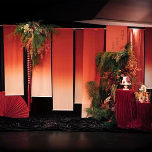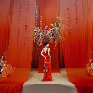 新しい中国風の赤いグラデーション結婚式の現場書道ガーゼ吊り布背景布中国風の結婚式のバナー装飾吊りカーテン