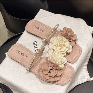 花の気質妖精スタイルスリッパ女性の夏のアウターウェア 2025 新しいファッションスカート付きフラットシーサイドビーチサンダル