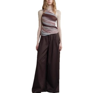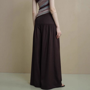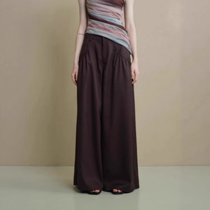 someone sometimes柔软透气口袋收褶设计宽松阔腿裤女棕色休闲裤