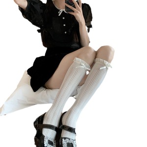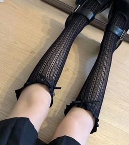 『ブロークンエンジェル』フレンチ春夏レースカーフソックス乳白日本製JKリボン中空ソックス