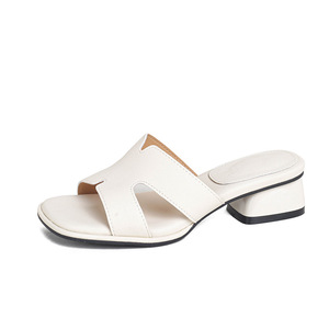 夏に外で履く女性用の太くて太い足用サンダル、インネットセレブの太いヒールハーフスリッポン、フェアリースタイルの幅広で太いスリッパ