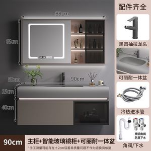 (【智能背光储物】镜柜款带抽纸孔)_尺寸(【90cm肤感圆弧】一体盆浴室柜组合)
