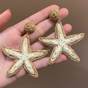 ボヘミアンスタイルの誇張された女性用イヤリング、夏のニッチなハイエンドイヤリング、エレガントなわら織りのレトロなエスニックスタイルのイヤリング