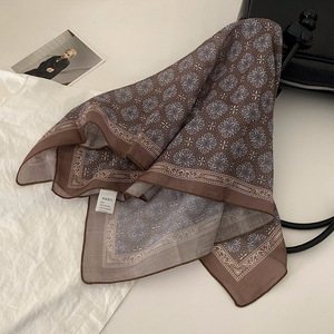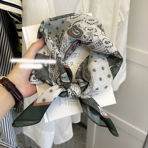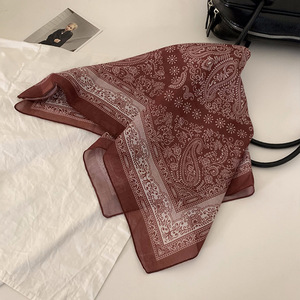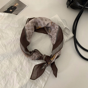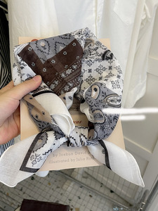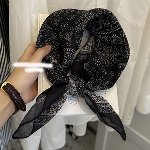 綿とリネンの夏の韓国の小さな正方形のスカーフ、女性用のフランスの芸術的な薄いシルクスカーフ、カシューナッツの花のスカーフ、髪を飾るネッカチーフ
