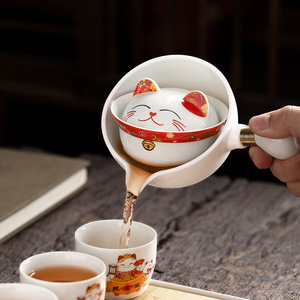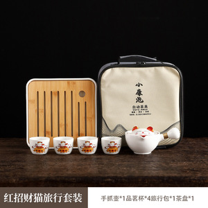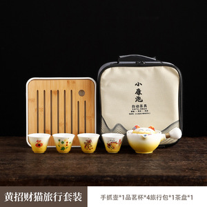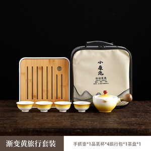 Xiaokang ポータブルセラミック火傷防止屋外車載絶妙な自動旅行ティーセットクイックカップセット