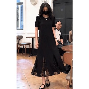 大码2-300斤胖mm宽松气质蕾丝拼接短袖长款裙子遮肉显瘦连衣裙夏