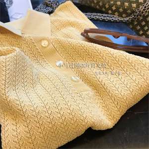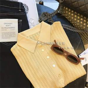 夏フレンチイエロー中空ラペルセーター半袖Tシャツレディースポロシャツデザインニッチ薄手トップ
