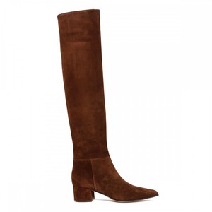 秋冬新作レディースブラウンスエード太ヒール大きいサイズオーバーニーブーツ外国貿易ブーツポインテッドトゥハイヒールセクシーハイブーツ