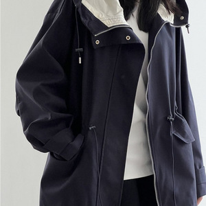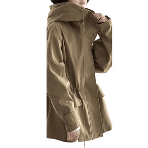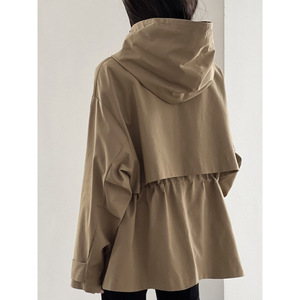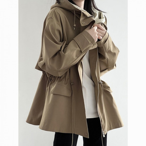 新款英伦风卡其色连帽风衣外套女秋季小个子大衣复古休闲宽松上衣