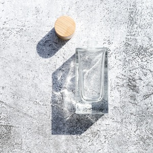 50ml ネイキッドボトル + スプレーヘッド + 茶色のブナ材の蓋、透明、ガラス