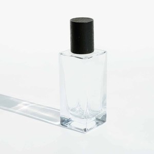 30ml ネイキッドボトル + スプレーヘッド + 黒ブナ材の蓋、透明、ガラス