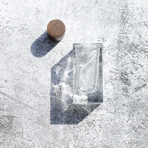 50ml ネイキッドボトル + スプレーヘッド + オリジナルカラーのブナ材蓋、透明ガラス