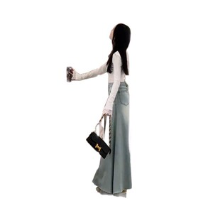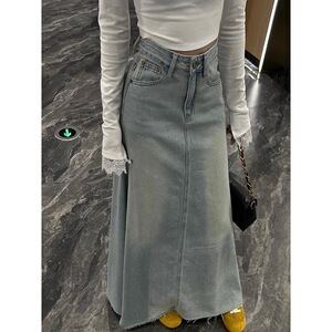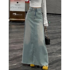 2025 春の新韓国スタイル多用途ハイウエストウォッシュデニムスカートレトロスリムビッグスカート女性のための