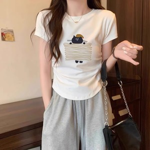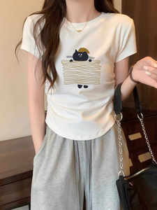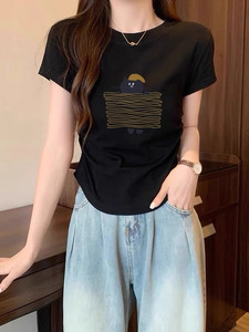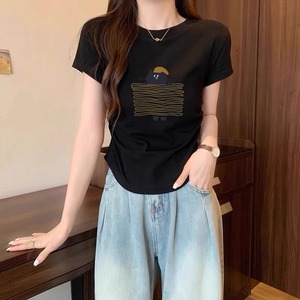 女性のための半袖右肩 T シャツ 2025 夏の新しいホットスタイルの女性のスリムフィット半袖トップ夏の着用綿