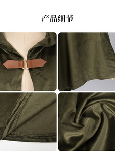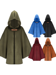 中世cosレトロスエードフード付きマントコスプレステージドレスアップホリデープレイ衣装