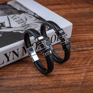 temu ホット販売クロスボーダーサプライメンズ人気マグネットバックルブレスレットファッションパーソナライズされた H 文字メンズ PU ブレスレット