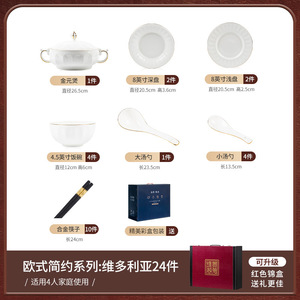 景徳鎮の軽い豪華な碗の皿のセットの家庭用の骨の磁器の線の碗の食器の器の組み合わせの簡単な碗の皿の料理の料理のセット