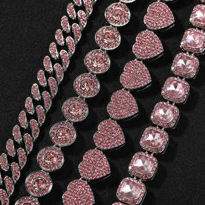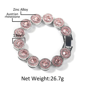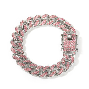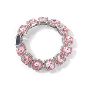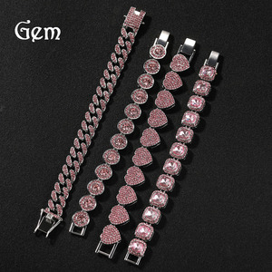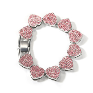 时尚百搭粉钻合金手链简约几何爱心手链女新款酷炫潮人嘻哈手饰