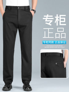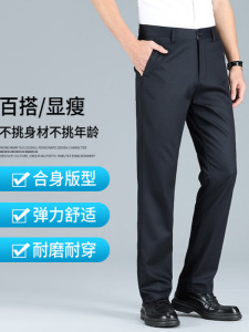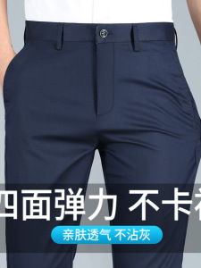 2025夏の氷糸の薄いタイプのカジュアルなズボンの男性のまっすぐな筒のゆったりした弾力性の熱いビジネスの四面弾の男性のズボン