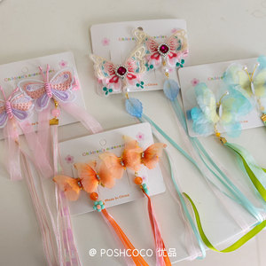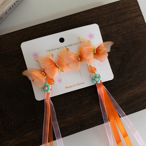 スーパーフェアリーバタフライタッセルリボンクリップ〜中国風子供女の子漢服ヘアピン古代スタイルヘアピンヘアアクセサリー