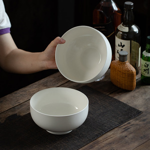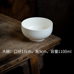 【米白】円形陶磁器スープ碗1100ml徳化白磁家庭用大サイズ野菜碗ご飯碗食器