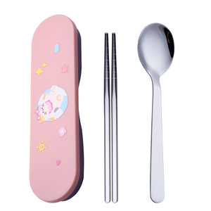 漫画ステンレススプーン箸セット学生用ご飯食器2点セットアウトドア旅行携帯セット