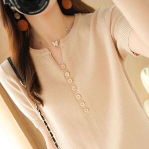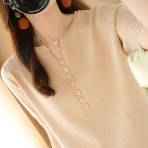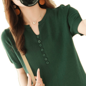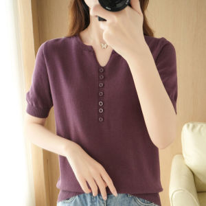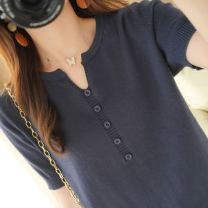 夏の新スタイルアイスシルクニット半袖レディース襟婦人服大きいサイズシンプルなボトムシャツファッショナブルな半袖トップ