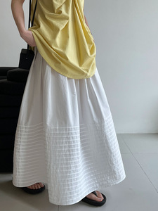 NS 韓国風ドレープフラワーバッドスカート夏の女性の新しいゆったりとしたエアリースカートロングAラインスカート3591