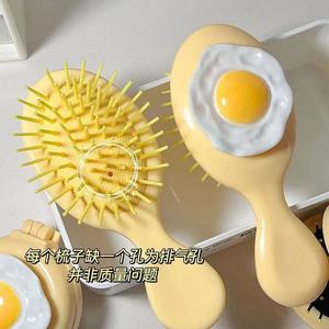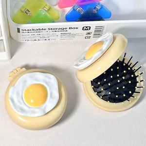 漫画チーズカットエッグエアバッグ小型コームコンパクトポータブルマッサージコームかわいいミニエアクッション折りたたみ一体型ミラー