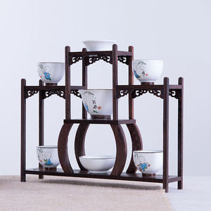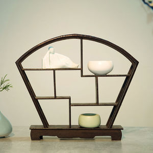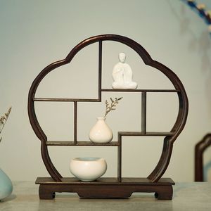 博古架小型桌面博古架考古盲盒名创优品古代实木置物架茶桌摆件架